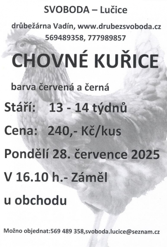 Chovné kuřice u obchodu Záměl v 16:10 hod. staří 13 - 14 tydnu