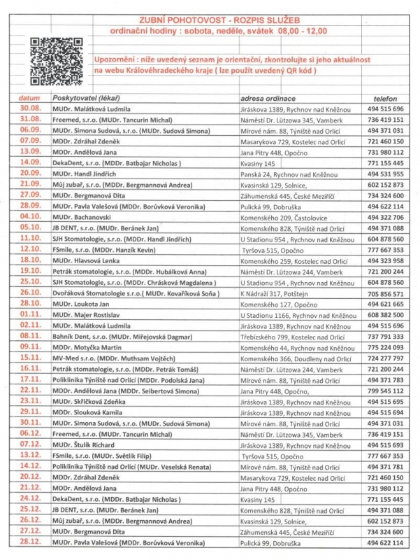 Zubní pohotovost - rozpis služeb