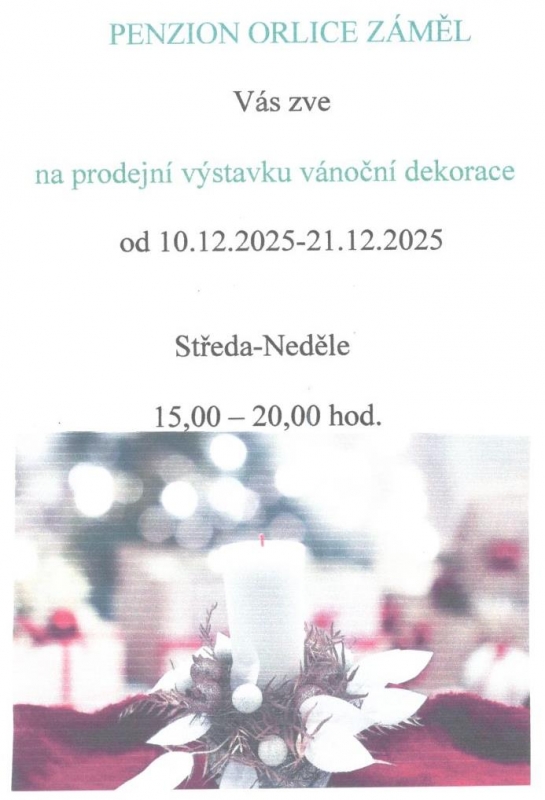 Prodejní výstava vánočních dekorací 10.12. - 21.12.2025 od 15:00 - 20:00 hod.