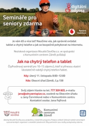 ✨ Seminář je zdarma a je určen seniorům. Probíhá v rámci programu Digitální odysea ve spolupráci s Moudrou Sovičkou a Nadací Vodafone.