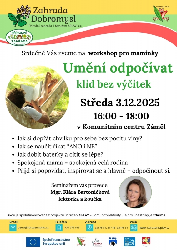 Přijď si popovídat, inspirovat se a hlavně – odpočinout si.