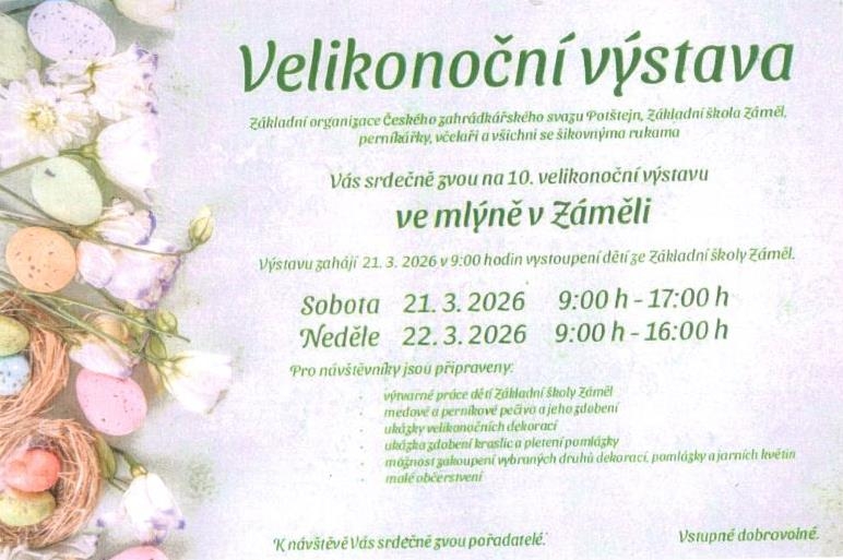 Výstavu zahájí 21.3.2026 v 9:00 hod. vystoupení dětí ze základní školy Záměl