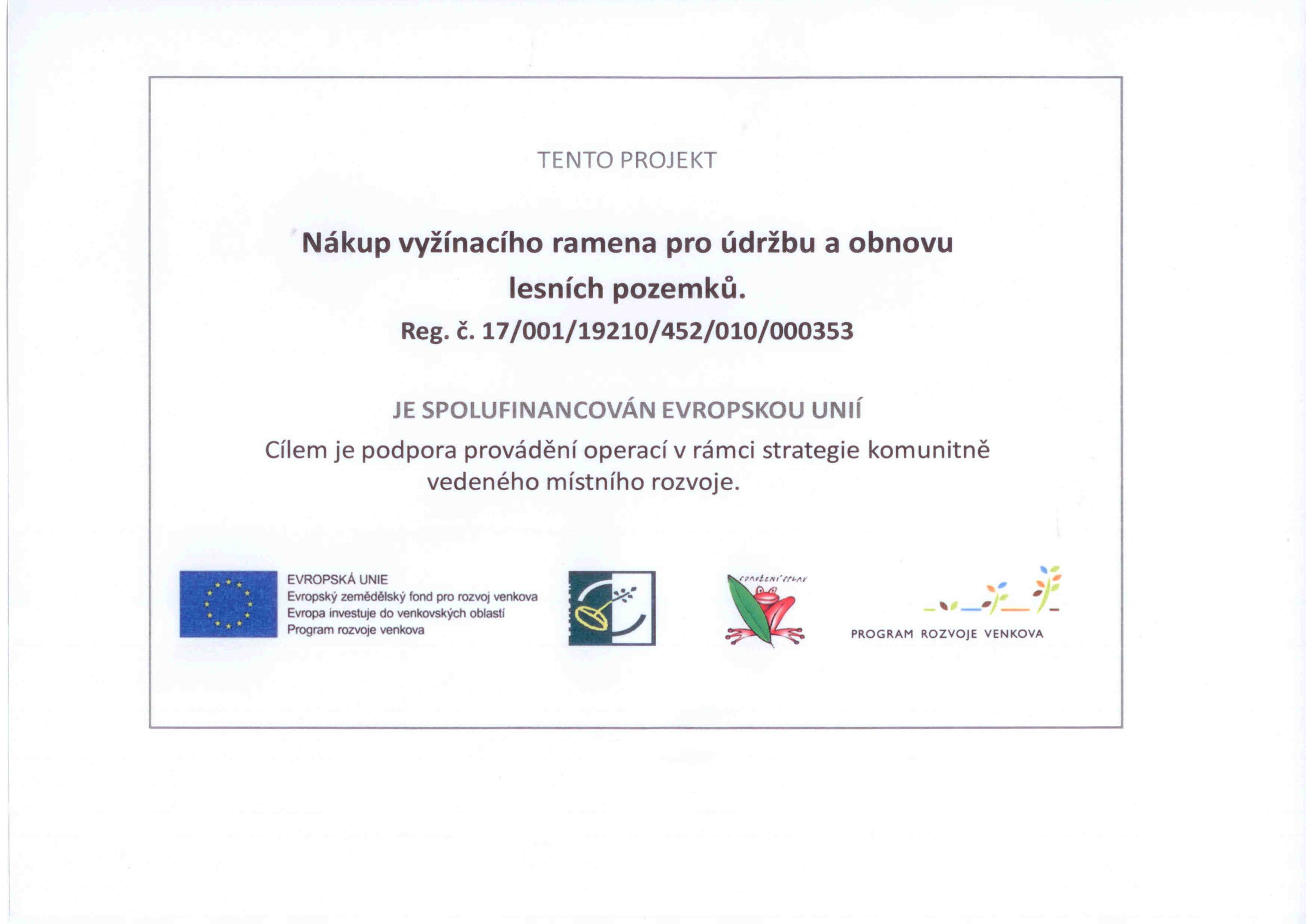 | Přílohy | Nákup vyžínacího ramena pro údržbu a obnovu lesních pozemků Projekt číslo: 17/001/19210/452/010/000353